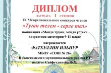 Муниципальное бюджетное общеобразовательное учреждение «Средняя общеобразовательная школа №26 с углубленным изучением отдельных предметов» Нижнекамского муниципального района Республики Татарстан / Татарстан Республикасы Түбән Кама муниципаль районының «26нчы урта гомуми белем бирү мәктәбе» муниципаль бюджет гомуми белем бирү учреждениесе