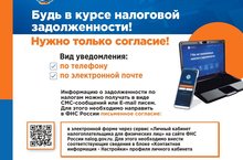 Уважаемые налогоплательщики! Межрайонная ИФНС России № 11 по РТ сообщает, что дав свое согласие на информирование, налогоплательщик сможет получать информацию о задолженности по налогам в виде СМС-сообщений на телефон или E-mail писем на электронную почту. Рассылка осуществляется не чаще 1 раза в 3 месяца. Чтобы начать получать сообщения от налоговой инспекции, необходимо дать ФНС на это письменное согласие. Согласие можно представить: - в электронной форме через сервис «Личный кабинет налогоплательщика для физических лиц» на сайте ФНС России nalog.gov.ru. Для этого необходимо внести соответствующие сведения в блоке «Контактная информация - Настройки» профиля личного кабинета. - в электронной форме через мобильное приложение «Налоги ФЛ». Для этого необходимо внести соответствующие сведения в блоке «Обращения – Прочие ситуации». - лично или через представителя; - по почте заказным письмом. При заполнении формы «Согласия» через Личный кабинет нужно указать вид уведомления, а именно уведомлять по номеру телефона или по электронной почте и подтвердить «Согласие», подписав его электронной подписью. В случае изменения указанного телефонного номера или электронной почты для информирования, необходимо повторно направить согласие в налоговый орган.