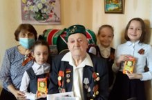 Мирсияпов Азгат Харисович, ветеран Великой Отечественной войны. Ученицы 3А класса Шарифуллина Алина, Мустафина Диляра, Махиянова Лилия и классный руководитель Хабибуллина Алсу Анваровна сегодня поздравили ветерана: пели песни и читали стихи. Передали письмо Ветерану от учащихся 3А класса.