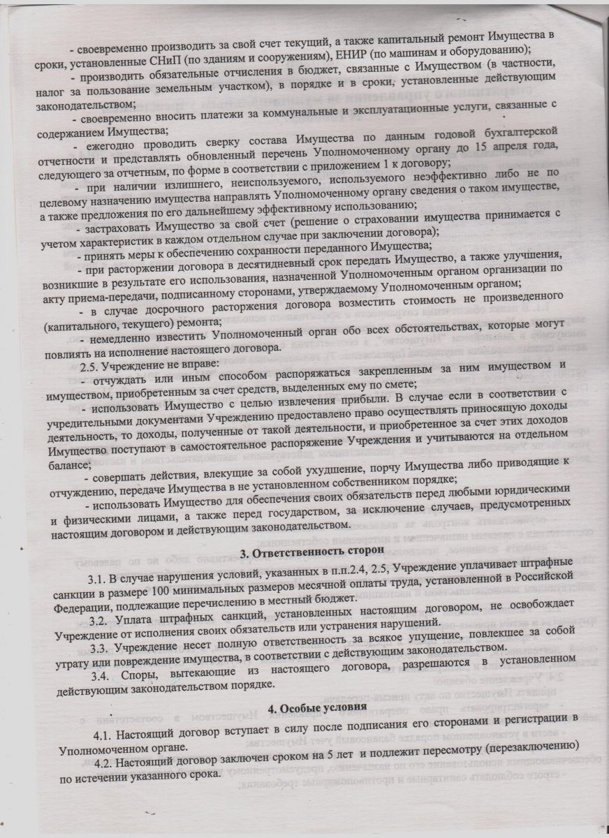 Договор о закреплении муниципального имущества на право оперативного управления за муниципальным учреждением № 100060557