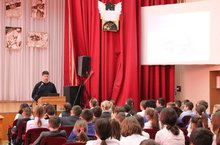 В актовом зале нашей школы Трубин Дмитрий Владимирович Заместитель директора ГИМС провёл инструктаж по поведению на водоёмах в весеннее время среди 5-6 классов.