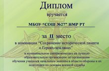 Школа заняла II место в муниципальном смотре-конкурсе на лучшую образовательную организацию по обучению учащихся начальным знаниям в области обороны и их подготовки по основам военной службы.