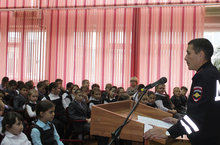 Сегодня в актовом зале школы прошла встреча учеников начальной школы с инспектором ИАЗ ОГИББД УМВД РТ по Нижнекамскому району капитаном полиции Хафизовым Р.Р.