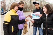 Активисты совета старшеклассников в рамках "Недели добрых дел" раздавали всем желающим георгиевские ленты. Акция приурочена к 70-летию Великой Победы советского народа над фашистской Германией.