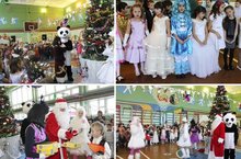 Весело и динамично прошла елка у начальных классов. Все школьники подготовились к празднику - оделись в красочные костюмы. В гостях у младших школьников побывали сказочные герои: кунг-фу панда, коза, Снегурочка, Баба-яга, Дед Мороз и другие. Любимые герои детворы - танцевали, пели песни, кружили хороводы, дарили подарки. Дети были в восторге от праздника.