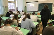 В рамках недели русского языка и литературы в МБОУ "СОШ #27" прошла встреча учащихся старших классов с Поспеловым Сергеем Александровичем, жителем Елабуги, исполнителем бардовской песни. Сергей Александрович также читал стихи известных авторов и стихи, написанные его братом, Поспеловым Евгением Александровичем.