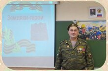 В преддверии праздника"Защитника Отечества" в рамках месячника героико-патриотического воспитания в 7В классе прошла встреча со старшим сержантом внутренних войск, ветеран боевых действий Республика Чечня с Альфисом Вагизовичем.
