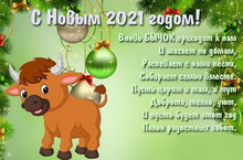 И снова пришёл Новый год! Этот 2021 год — год Быка, Металлического Быка! Так пусть же в этом году вы обретете такую силу и стойкость, какой обладает символ этого года! Пусть ни одна задача, которую вы перед собой ставите, не сможет устоять перед этой силой и энергией! А дополняют это пусть крепкое здоровье, а также удача и находчивость!