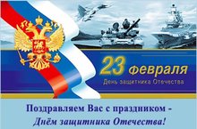 Дорогие мужчины! Сердечно поздравляем Вас с Днём Защитника Отечества — праздником, который вобрал в себя богатые и славные ратные традиции, который олицетворяет мужество и героизм защитников и освободителей родной земли на всех этапах её истории. В этот день мы снова возвращаемся памятью и сердцем к грозным и незабываемым страницам прошлого, чтобы ещё раз понять, кому мы обязаны мирным небом над головой, возможностью жить и растить детей и внуков. От всего сердца желаем Вам мира, здоровья и долголетия, бодрости духа и семейного согласия, радости и добра!