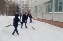 Сегодня старшеклассники помогали школе в уборке снега. И погода была отличная!