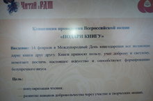 14 февраля в Международный День книгодарения все желающие дарят книги друг другу. Книги приносят пользу, учат доброму и светлому, помогают постичь настоящее искусство и способствуют формированию безупречного вкуса. В школе объявлена акция, целью которой является популяризация чтения, развитие навыков добровольчества через участие в творческих мероприятиях и пропаганда ценности книг.