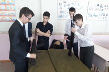 Юноши 9-х классов ежедневно проводят тренировки по сборке и разборке автоматов.
