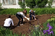 Учащиеся, посещающие лагерь труда и отдыха, умеют и работать и отдыхать. На школьном дворе появились грядки, вазоны и цветники.