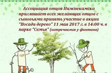 Ассоциация отцов Нижнекамска приглашает всех желающих отцов с сыновьями принять участие в акции "Посади дерево" 11 мая в 14.00 часов в парке "Семья".