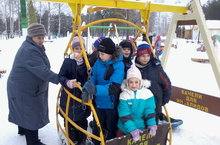 Дети сегодня побывали в парке "Семья". Ребята с удовольствием покатались на горках, на качелях.