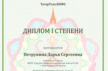 Поздравляем учащихся – победителей Международной олимпиады по татарскому языку «ТатарТеле. Инфо» – Петрунину Дарью, Шишкину Арину, Чайка Анастасию, Кубышкина Артура, Чернова Максима, Козлову Диану, Хисматуллину Камиллу, Аглиуллину Эльвину, Вафину Алию, Козыреву Анастасию, Овчинникова Анатолия, Ершову Викторию и учителей татарского языка и литературы Фассахутдинову А.М., Гильфанову Г.Р., Мингараеву Г.М. и Фазылову Р.В., подготовивших дипломантов.
