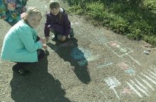 Ребята разбились на пять команд, и в течение получаса каждой команде нужно было нарисовать рисунок на асфальте на тему «Безопасность дорожного движения».