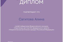 Педагог-организатор школы №28 Сагитова Алина Рамилевна стала победителем Всероссийского конкурса "Навигаторы детства. 3.0" Федерального проекта "Патриотическое воспитание граждан Российской Федерации". Молодец, Алина Рамилевна! Школа гордится Вашими успехами! Дальнейших Вам успехов!