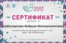Педагоги нашей школы приняли активое участие в акции "Большой этнографический диктант". Шайхутдинова Ф.В. написала диктант на 100 баллов. Поздравляем, Файруза Валимухаметовна!