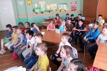 15 июня в пришкольном лагере была организована «Игра по станциям». Участвовали все 10 отрядов, 260 человек. Ребята соревновались в знаниях государственных символов Российской Федерации, пословиц и поговорок, в актерском мастерстве, умении рисовать закрытыми глазами. На станции «Творческая мастерская» ребята написали пожелания лагерю, на музыкальной - исполнили гимн России, на спортивной - подтягивались и отжимались. На станции «Медицинская» ребята показали умения накладывать повязку и оказывать первую медицинскую помощь. По окончании прохождения всех девяти станций, были подведены итоги и выявлены самые находчивые и эрудированные ребята. Ими оказались дети из первого отряда.