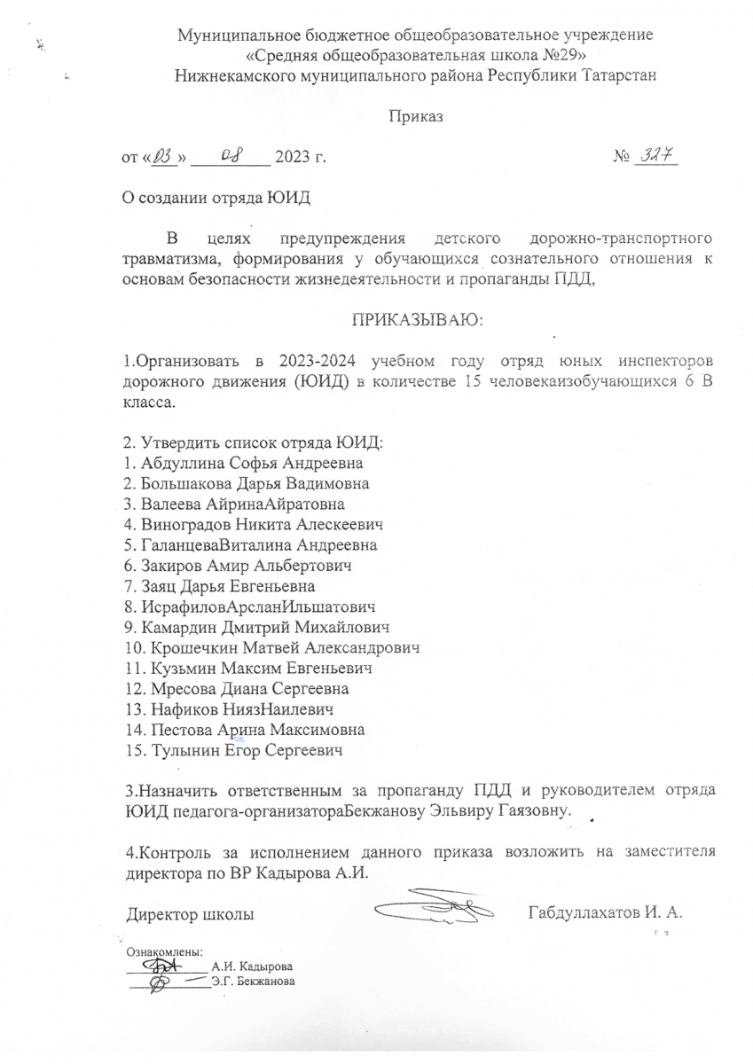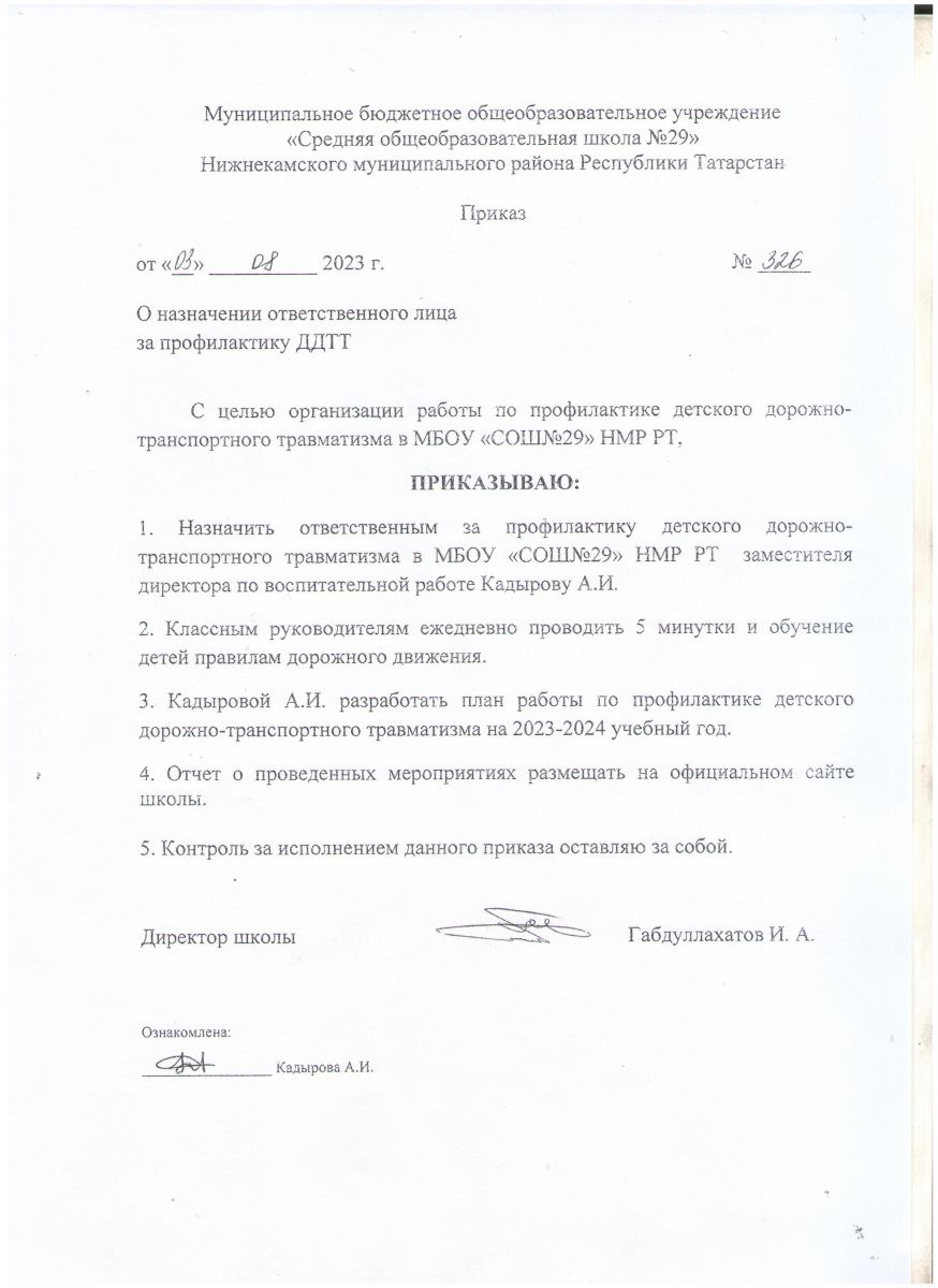 Приказ о назначении ответственного лица за профилактику ДДТТ