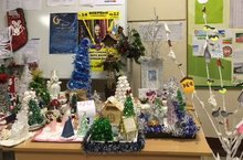 Ежегодно накануне Нового года в нашей школе проходит выставка творческих работ "Зимняя фантазия". На выставке представлены работы выполненные педагогами, учащимися и их родителями: здесь и символ года Мышка, и красавица елочка, и Дед Мороз со Снегурочкой. Яркие композиции на тему зимы изготовлены из разных материалов и в самых различных техниках исполнения. Работы выставлены в фойе школы, чтобы их все могли увидеть.