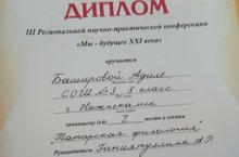 Поздравляем Баширову Адилю, ученицу 5В класса, занявшую 1 место в III Региональной научно-практической конференции "Мы- будущее XXI века" в секции "Татарская филология", руководитель проекта Гиниятуллина А.Р. Молодец!