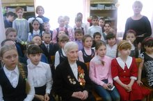 "Пусть не будет войны никогда" праздничное мероприятие в Центральной детской библиотеке, встреча учащихся 5 А и 2 А класса с ветераном ВОВ Кленчевой Александрой Ивановной