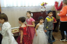 На празднике малыши пели новогодние песни вместе с Атаманшой и Разбойниками, играли в весёлые игры со Снежной Королевой. Водили хороводы с цыганами, рассказывали стишки Деду Морозу и Снегурочке, демонстрировали свои праздничные костюмы, ну и конечно за свои старания ребята получили сладкие призы!