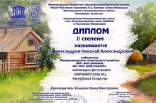 Поздравляем ученика 9"Б" класса Александрова Николая - Дипломанта II степени Международного творческого конкурса "Вот моя деревня, вот мой дом родной" в номинации "Фотография" (руководитель Ельцова И.В.). Желаем Николаю не стоять на месте, а смело двигаться вперёд — к новым знаниям, к новым открытиям, к новым мечтам и успехам!