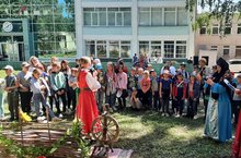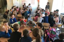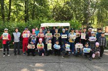 Ребята из летнего пришкольного лагеря познакомились с передвижной выставкой детских рисунков, в рамках Национального проекта "Экология - детский взгляд".