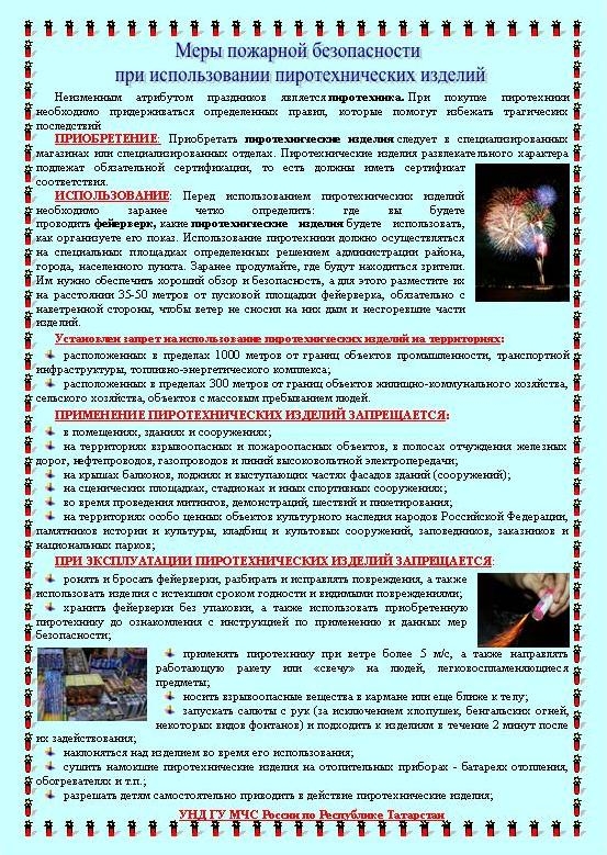 Памятка по безопасному применению пиротехнических изделий