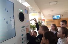Обучающиеся нашей школы учатся правильно утилизировать пластик при помощи установленного в фойе фандомата компании СИБУР.