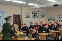 В рамках открытого урока с обучающиеся 8-го класса выполнили строевые приемы, повторили классификацию индивидуальных средств защиты. Изучили приемы передачи информации при помощи флажков – флажковый семафор.