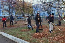 У нас продолжается уборка территории школы. Сегодня педагогический коллектив начальной школы присоединился к среднику.
