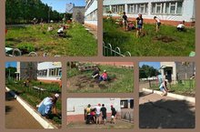 Главное занятие ребят ТОШ на пришкольном участке в жаркие дни - это уход за клумбами, полив. 21.06.2018