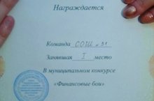 Команда 10 класса стала победителем муниципального конкурса "Финансовые бои". 20.04.2018
