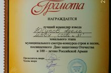 Ученик 4 класса Юсупов Адель признан лучшим командиром взвода и награжден грамотой на зональном этапе муниципального смотра - конкурса строя и песни, посвященного Дню защитника Отечества и 100-летию Российской Армии! 08.02.2018