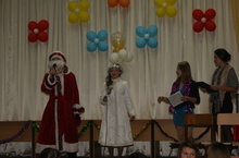Сегодня в актовом зале нашей школы прошло новогоднее представление с участием Деда Мороза и Снегурочки. Они прововели костюмированные и танцевальные конкурсы. Ребята "водили хоровод" вокруг елочки и на сцене показали новогодние номера.