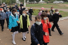 Каждый класс вместе с педагогами организованно без паники покинул здание школы в соответствии с утвержденным направлением движения.