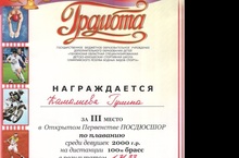 С 31.10 по 1.11.2011 в г.Пенза прошли соревнования по плаванию. Ученица 5в класса Камалеева Гулина заняла III место на дистанции 100м брасс.