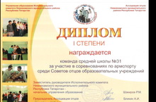 Команда МБОУ «Средняя общеобразовательная школа №31 с углубленным изучением отдельных предметов» заняла I место и получила диплом I степени за участие в соревновании по армспорту среди Советов отцов образовательных учреждений.