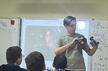 "Юные учителя" школы продолжают участие в конкурсных испытаниях. Ученицы 8 «А» класса Борсяк Дарья и Зарипова Эвелина провели в 3 «Г» классе игровой урок, на котором ученики отрабатывали технику ведения баскетбольного мяча.