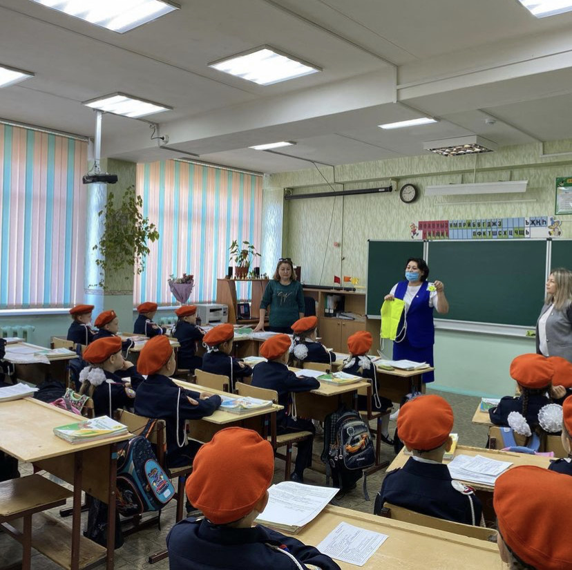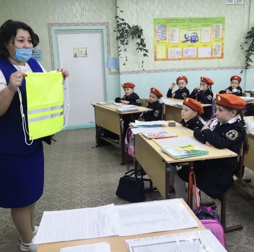 В рамках месячника по профилактике детского дорожно-транспортного травматизма «Внимание дети!» и в рамках акции «Дом-школа-дом», начальник Нижнекамского отделения профилактики ГБУ «БДД» Сафонова Ильсия Нурисламовна провела беседу по правилам дорожного движения с нашими первоклассниками.