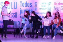 Сегодня прошло вечернее мероприятие, на котором выступала команда руководителей делегаций разных регионов. Как приятно видеть в первых рядах нашу уважаемую и любимую Эльмиру Ивановну! Она успевает не только готовить наших учеников на фестивале к различным мероприятиям, но и сама участвует в круглых столах руководителей, а также выступает на сцене, подавая пример своей работоспособностью, артистичностью, харизмой, жизнерадостностью. И нет сомнений, что у такого талантливого педагога могут такие творческие воспитанники!
