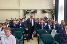 9 октября, наша школа приняла гостя Рустема Файзовича президента "Национального конгресса татарских и тюрских народов". Собрав классы Рустем Файзович, провёл классный час затрагивая очень важную тему. Вымирание языков. Из 8 млн татар, на своем родном языке говорят только около 6.8 млн...