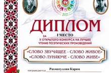 Обучающийся 2 класса Рахматуллин Карим стал победителем конкурса на лучшее чтение поэтических произведений "Слово звучащее - слово живое".