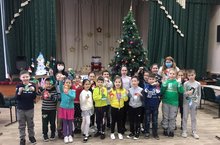 В нашей школе новая встреча с театральной студией "Настроение". С 21 по 24 декабря все ребята начальной школы посмотрели новогоднее представление "Новый год - на новый лад". Ребятам было предложено театральное представление, во время которого дети отправились на поиски Снегурочки. Пройдя все испытания с героями известных сказок, дети побывали в Сказочном лесу и нашли Снегурочку. В конце спектакля Дед Мороз угостил детей сладостями.