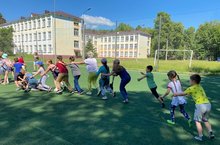 Активные спортивные игры в пришкольном лагере "Непоседы".