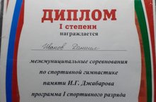 Поздравляем Иванова Даниила, ученика 6А класса школы №6, занявшего первое место в межмуниципальных соревнованиях по спортивной гимнастике памяти И.Г.Джабарова по программе первого спортивного разряда.